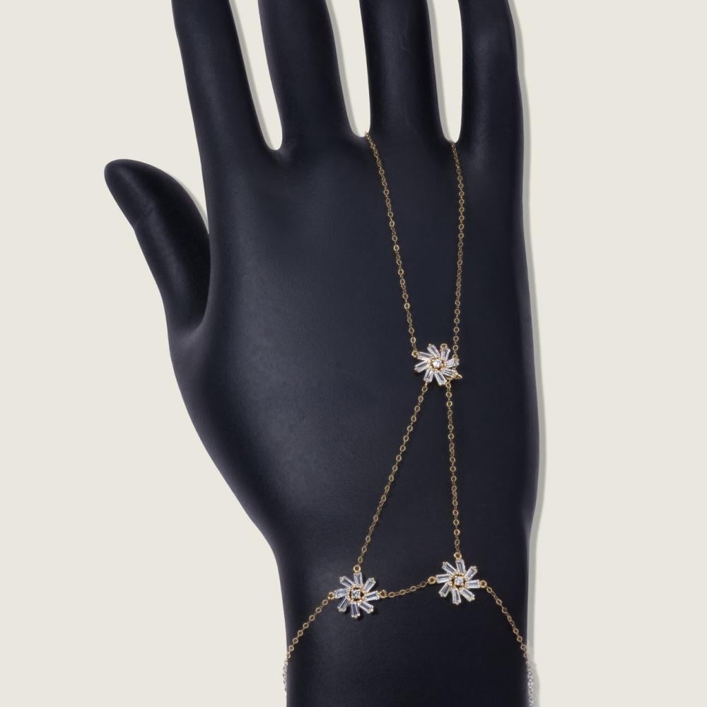 - تصميم "كف" يجمع بين السوار والخاتم في قطعة واحدة، بشكل ورود متناسقة.