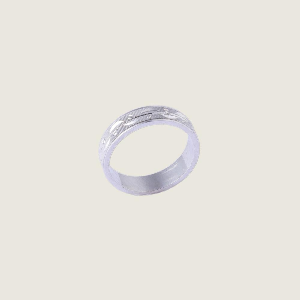 نقدم لكم خاتم فضة رجالي بتصميم عصري يجمع بين البساطة الهندسية واللمسة الفنية. يتميز الخاتم بسطح مزخرف يجمع بين صفوف من الدوائر الصغيرة المتراصة ونقوش لخطوط متقاطعة بشكل متناغم، مما يخلق نمطًا جذابًا يشبه التطريز الدقيق. هذا التصميم يمنح الخاتم مظهرًا فريدًا يتماشى مع الموضة الرجالية الحديثة، ويجعله خيارًا مثاليًا للرجل السعودي الباحث عن مجوهرات فضية تعبر عن شخصيته العصرية والراقية.