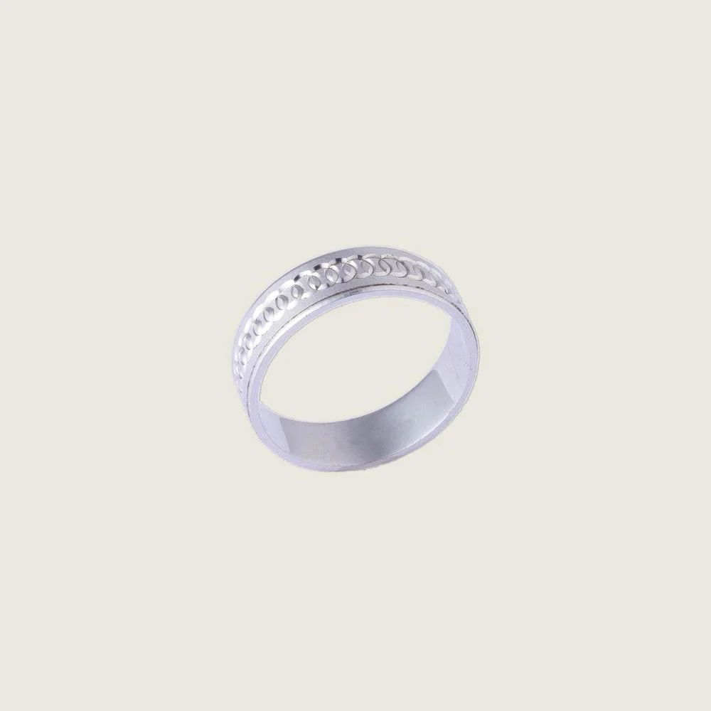 خاتم فضة رجالي بتصميم الدوائر الصغيرة والخطوط المتقاطعة