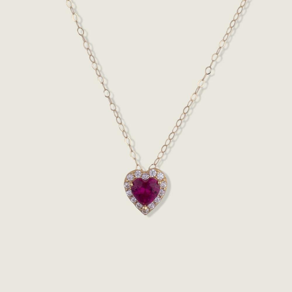 عقد ذهب عيار 18 بتصميم قلب مرصع بالياقوت الأحمر