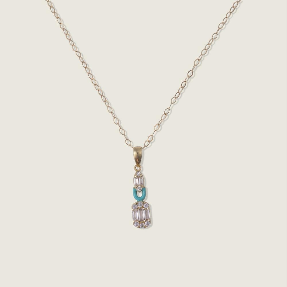 استكشفي جمال التصميم الهندسي مع هذا الطقم الفريد، حيث تتشابك قطعتان من الزركون اللامع مع وصلة فيروزية ناعمة. كل قطعة في هذا الطقم مصممة بعناية لتناسب أناقة طفلتك، وتمنحها لمسة عصرية وفخمة في نفس الوقت، مما يجعله قطعة مميزة في خزانتها.