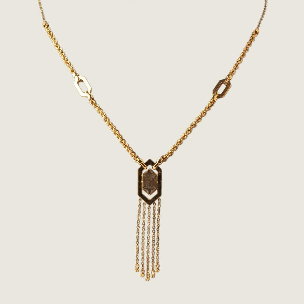 هذا الطقم يمثل قمة الابتكار في تصميم المجوهرات المعاصرة. يتميز عقد اللاريات (Y-Drop) بتناغم مدهش بين سلسلة الحبل (Rope Chain) الكلاسيكية وحلقات السلسلة المستطيلة (Paperclip) العصرية. ينتهي العقد بشرّابة معدنية ناعمة، مما يمنح إطلالتك عمقاً وحركة آسرة. إنه الخيار الأمثل للمرأة التي لا تخشى الجرأة في التعبير عن أسلوبها الفريد.